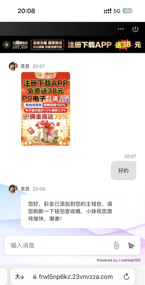 陈生 太阳城89T注册绑定银行下载app找客服申请38彩金 到账情况:自测【充值后果自负】 领取方式:注册绑定银行下载app找客服申请38彩金 安全系数:低 平台资历:未知 会员评分:★☆☆☆☆ 申领网址:https://238109.com/ 提现要求:最低提现额度为100元 图例介绍