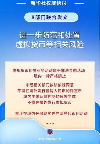 中国人民银行等八家监管机构近日联合发布通知,进一步防范和处置虚拟货币相关风险。